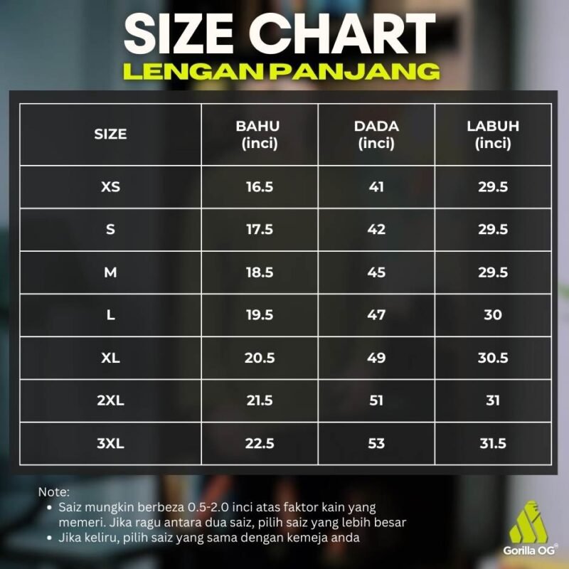 ā Tersedia dari saiz XS hingga 3XL
